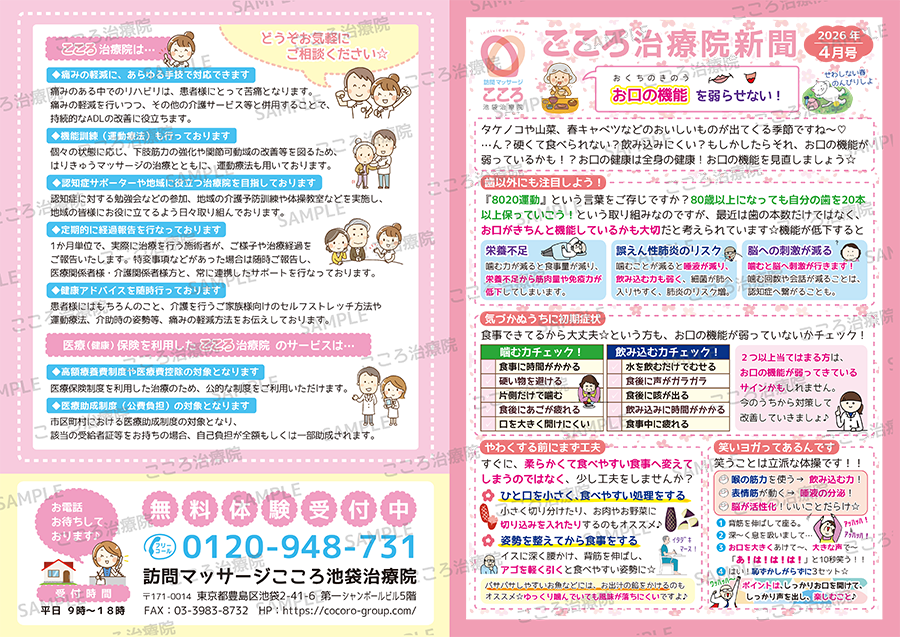 - こころ治療院新聞4月号掲載しました。<お口の機能を弱らせない!>